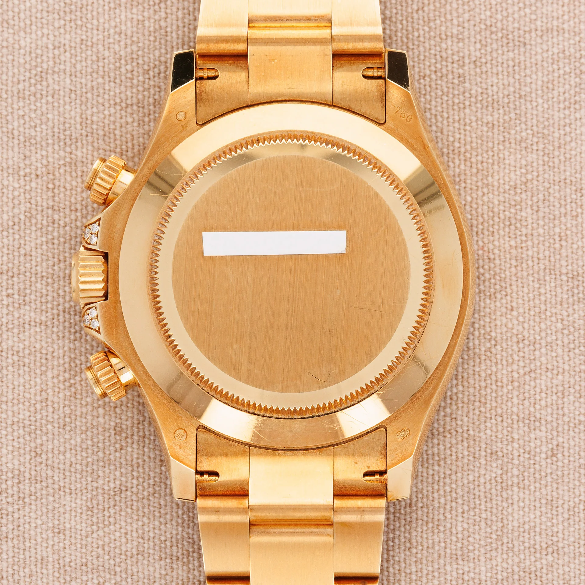 The gold tone of the case adds to the luxurious impression. It has a solid weight, giving the watch a substantial feel on the wrist, which is crucial for replicating the premium experience of the original Daytona.