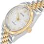 Dial: Silver jubilee anniversary dial with replica Rolex factory diamond hour markers and yellow gold baton hands. Date calendar at the 3 o'clock aperture.